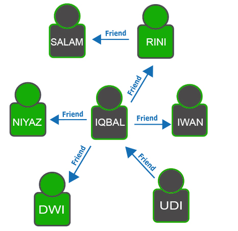 Grapik, database jenis grafik menggunakan node sebagai entitas data dan edge sebagai hubungan antar entitas. Setiap edge memiliki node awalan dan node akhiran. Edge juga menggambarkan hubungan antara oratua-anak, kepemilikan, tindakan dan lain sebagainya. Tidak ada batasan jumlah suatu node untuk terhubung dengan node lainnya. Tujuan dari database jenis grapik ini adalah jejaring media sosial, grafik pengetahuan dan mesin rekomendasi. Untuk lebih mudah memahi database grafik anda dapat melihat gambar dibawah ini tentang relasi pertemanan.