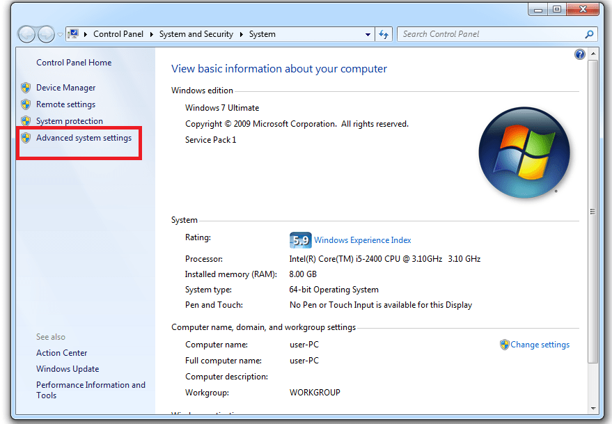 - Membuka Control Panel > System and Security > System. Lalu anda pilih Advanced System Setting